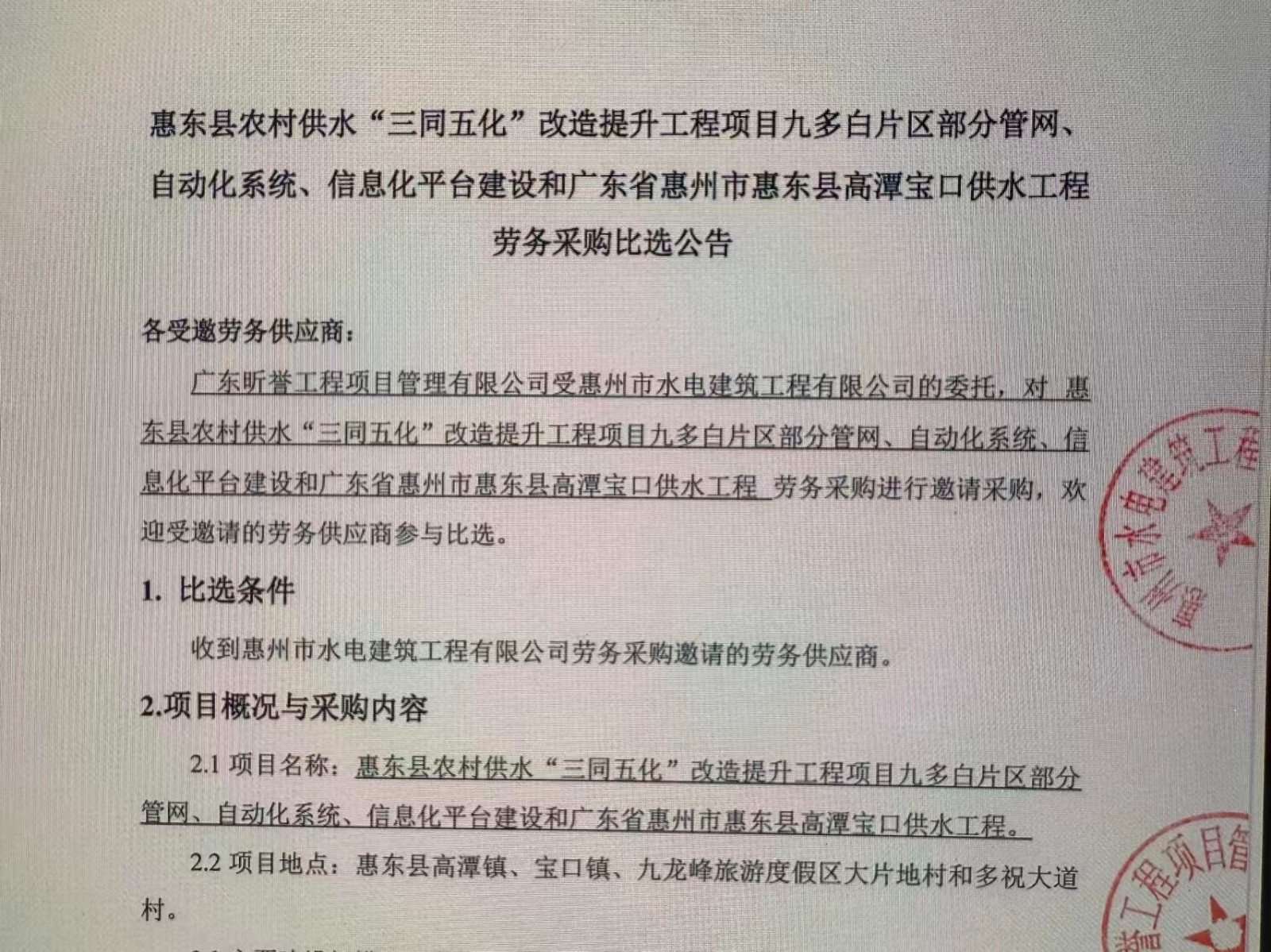 惠州市水電建筑工程有限公司勞務供應商庫擴庫評審結果公示……